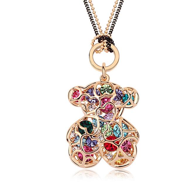 Precioso Collar en baño de oro amarillo de 18 quilates, diseño de oso con incrustación de cristales en colores. Fabricado en una estructura de aleación de platino con rodio sin níquel 1. joyería Hipoalergénica. 2. Incluye cajita de joyería. 3. Garantía de 30 días por defectos de fabrica.