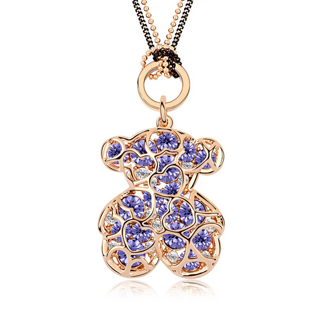 Collar en baño de oro rosa de 18 quilates, diseño de oso con incrustaciones de cristales color blanco y morado.