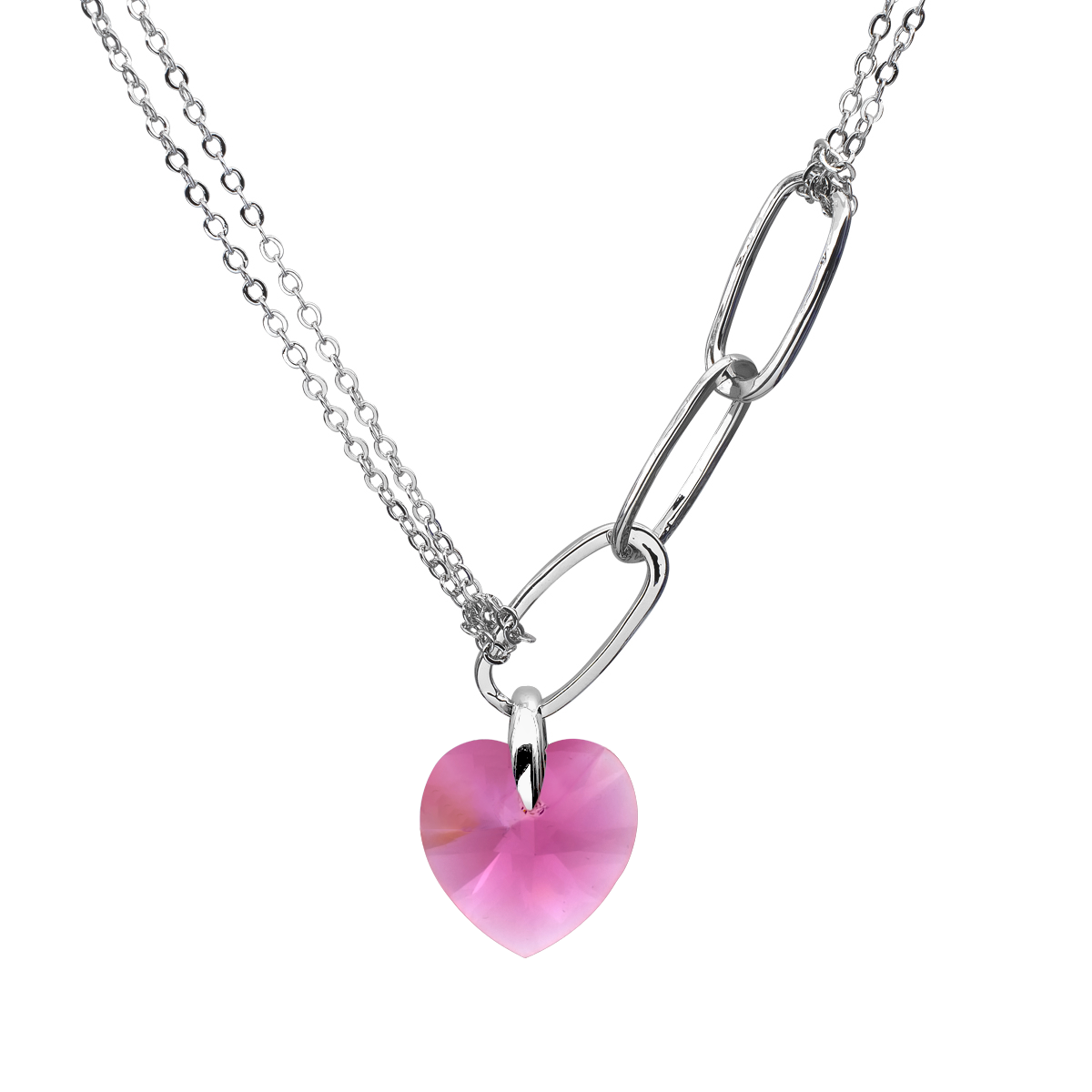 Collar en baño de oro blanco de 18 quilates, diseño de corazón en cristal en color rosa.