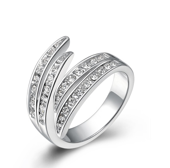 Anillo en baño de oro blanco de 18 quilates, diseño de espiral, con incrustaciones de cristales en color blanco.