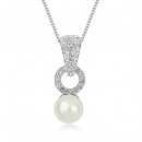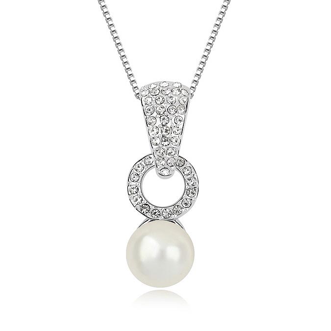 Elegante Dije en baño de oro blanco de 18 quilates, Elegante diseño e incrustación de cristales en color blanco y detalle de perla blanca. Fabricado en una estructura de aleación de platino con rodio sin níquel. 1. joyería Hipoalergénica. 2. Incluye cajita de joyería. 3. Garantía de 30 días por defectos de fabrica.