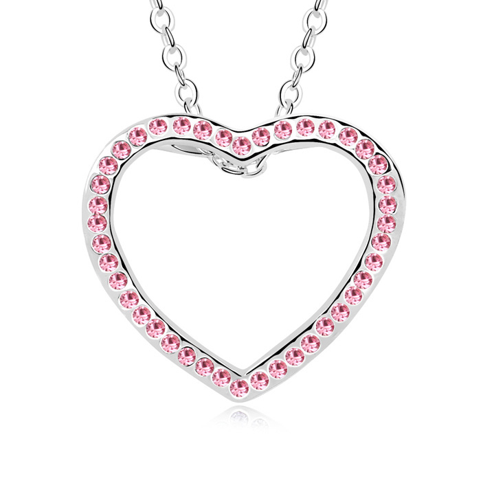 Tierno Dije en baño de oro blanco de 18 quilates, diseño de corazón con incrustación de cristales en color rosa. Fabricado en una estructura de aleación de platino con rodio sin níquel. 1. joyería Hipoalergénica. 2. Incluye cajita de joyería. 3. Garantía de 30 días por defectos de fabrica.