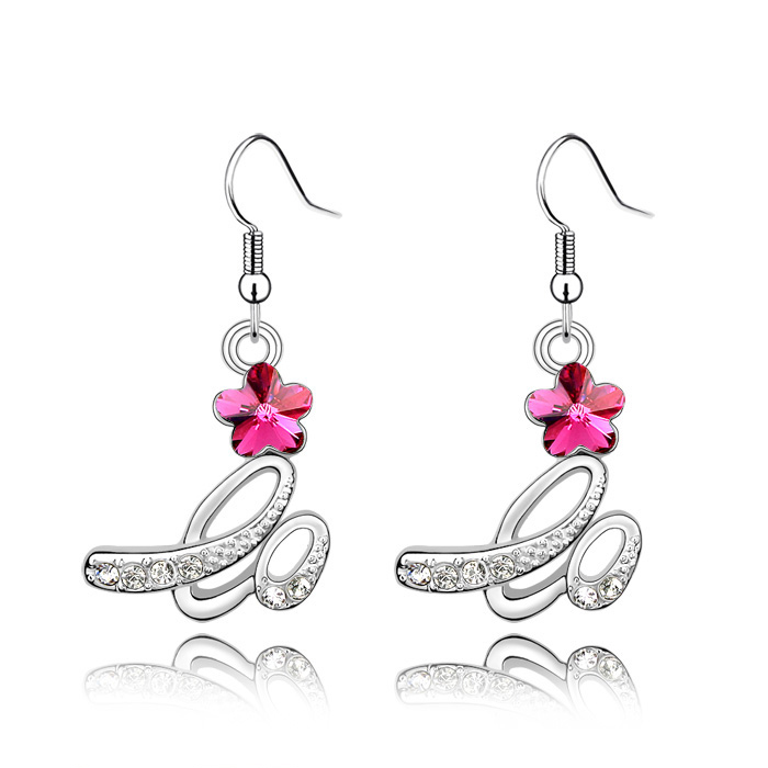 Preciosos aretes, en baño de oro blanco de 18 quilates, diseño de flor en cristal rosa, con detalle plateado e incrustación de cristales blancos. Fabricado en una estructura de aleación de platino con rodio sin níquel