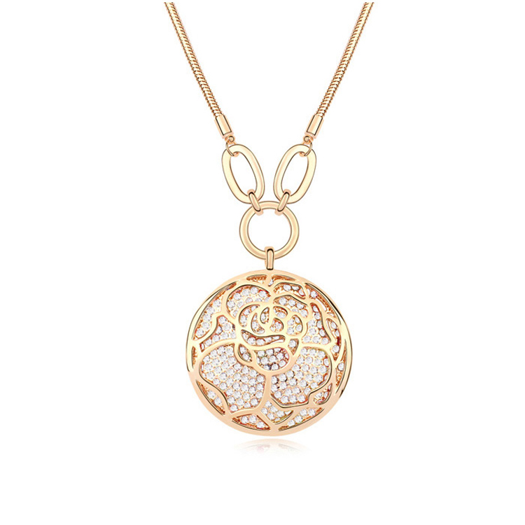 Collar en baño de oro amarillo de 18 quilates, diseño de rosa con incrustaciones de cristales blancos.