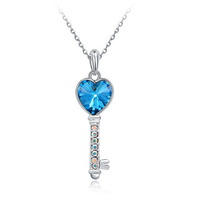 Lindo Dije en baño de oro blanco de 18 quilates, diseño de corazón con incrustación de cristales en color azul y blanco. Fabricado en una estructura de aleación de platino con rodio sin níquel 1. joyería Hipoalergénica. 2. Incluye cajita de joyería. 3. Garantía de 30 días por defectos de fabrica.