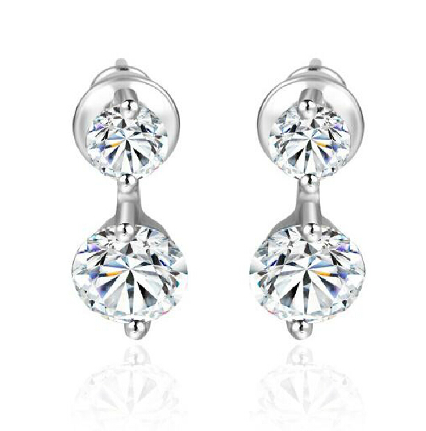 Aretes en baño de oro blanco de 18 quilates, fino diseño, con incrustación de cristales en color blanco corte brillante. Fabricado en una estructura de aleación de platino con rodio sin níquel.