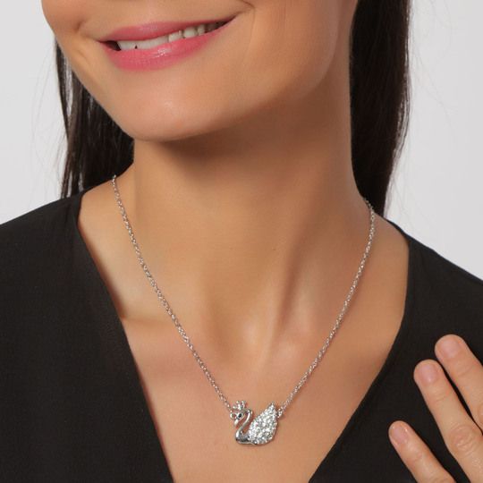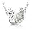 Dije con cadena en baño de oro blanco de 18 quilates, diseño de cisne con incrustación de cristales en color blanco. Fabricado en una estructura de aleación de platino con rodio sin níquel 1. joyería Hipoalergénica. 2. Incluye cajita de joyería. 3. Garantía de 30 días por defectos de fabrica.