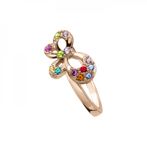 Anillo en baño de oro rosa de 18 quilates, diseño de mariposa, con incrustaciones de cristales en colores.