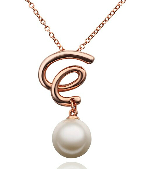 Tierno dije con cadena en baño de oro rosa de 18 quilates, elegante diseño de ondas y detalle de perla blanca.