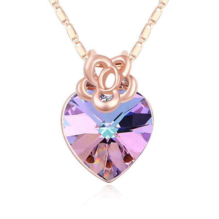 Dije en baño de oro rosa de 18 quilates, diseño de corazón con cristal en color violeta. Fabricado en una estructura de aleación de platino con rodio sin níquel. 1. joyería Hipoalergénica. 2. Incluye cajita de joyería. 3. Garantía de 30 días por defectos de fabrica.